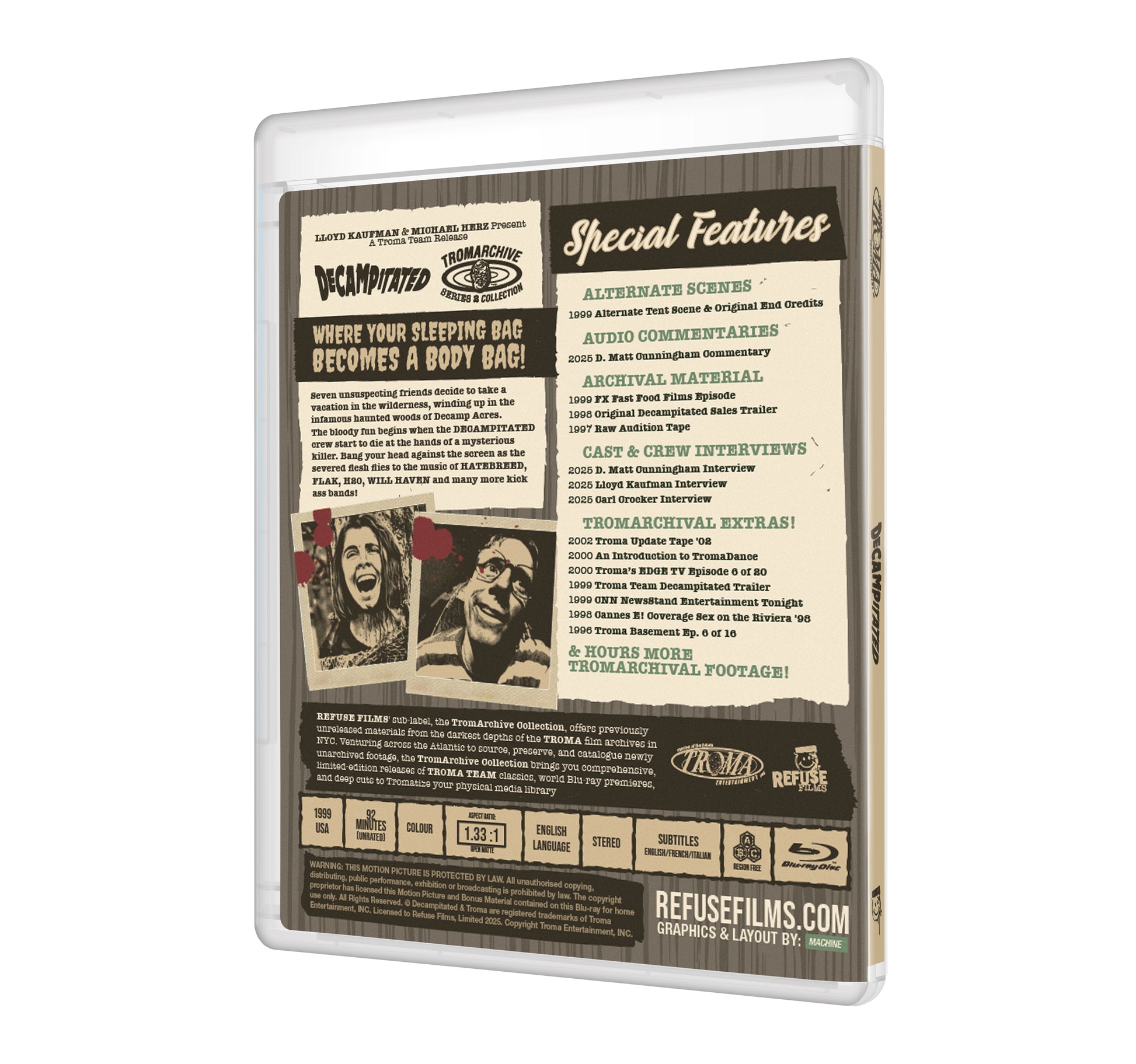 Refuse Films' sub-label, the TromArchive Collection, offers previously unreleased materials from the Troma film archives in NYC. Providing limited editions of Troma Team classics, world Blu-ray premieres, and subversive deep cuts to Tromatize your physical media library.
