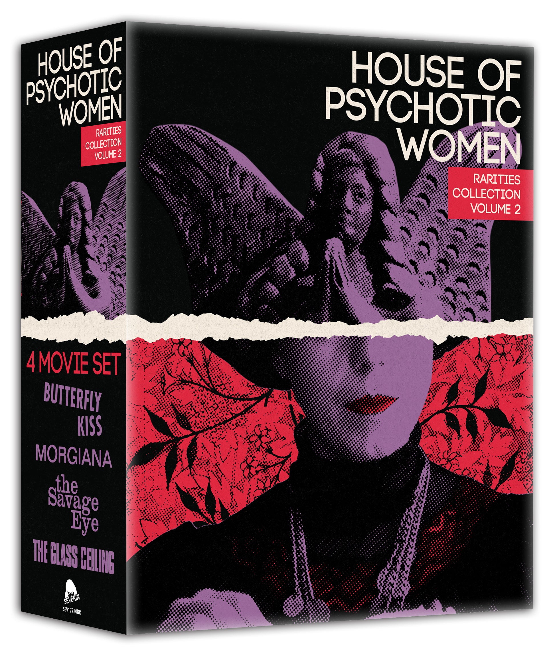 In this second collection inspired by her "groundbreaking" (Screen Anarchy) book that "forever changed the landscape of film analysis" (Bloody Disgusting), producer/curator Kier-La Janisse presents a new quartet of international classics - along with nearly 11 combined hours of Special Features - that explores startling depictions of female neurosis on screen: Amanda Plummer gives a searing performance as a disturbed drifter on a cross-country killing spree in BUTTERFLY KISS, the breakthrough debut from director Michael Winterbottom. Legendary Czech actress Iva Janžurová portrays a pair of rival sisters in Juraj Herz' crazed gothic melodrama MORGIANA. In Ben Maddow, Sidney Meyers and Joseph Strick's 'dramatized documentary' THE SAVAGE EYE, Barbara Baxley stars as a bitter divorcee adrift in Los Angeles' dark underbelly. And with the landmark Spanish thriller THE GLASS CEILING starring Carmen Sevilla, writer/director Eloy de la Iglesia crafts an unsettling story of paranoia, madness and murder. All 4 films in HOUSE OF PSYCHOTIC WOMEN RARITIES COLLECTION VOLUME 2 have been scanned from their original camera negatives and are presented on Blu-ray for the first time ever in North America.