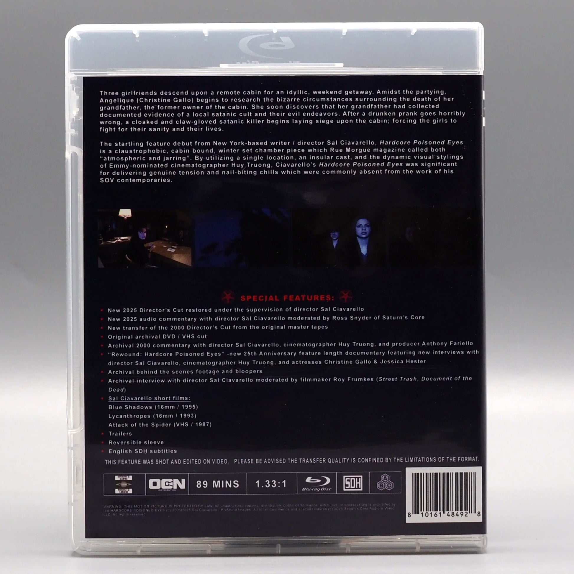 The startling feature debut from New York based writer / director Sal Ciavarello, Hardcore Poisoned Eyes is a claustrophobic, cabin bound, winter set chamber piece which Rue Morgue magazine called both “atmospheric and jarring”. By utilizing a single location, an insular cast, and the dynamic visual stylings of Emmy-nominated cinematographer Huy Truong, Ciavarello’s Hardcore Poisoned Eyes was significant for delivering genuine tension and nail-biting chills which were commonly absent from the work of his SOV contemporaries.