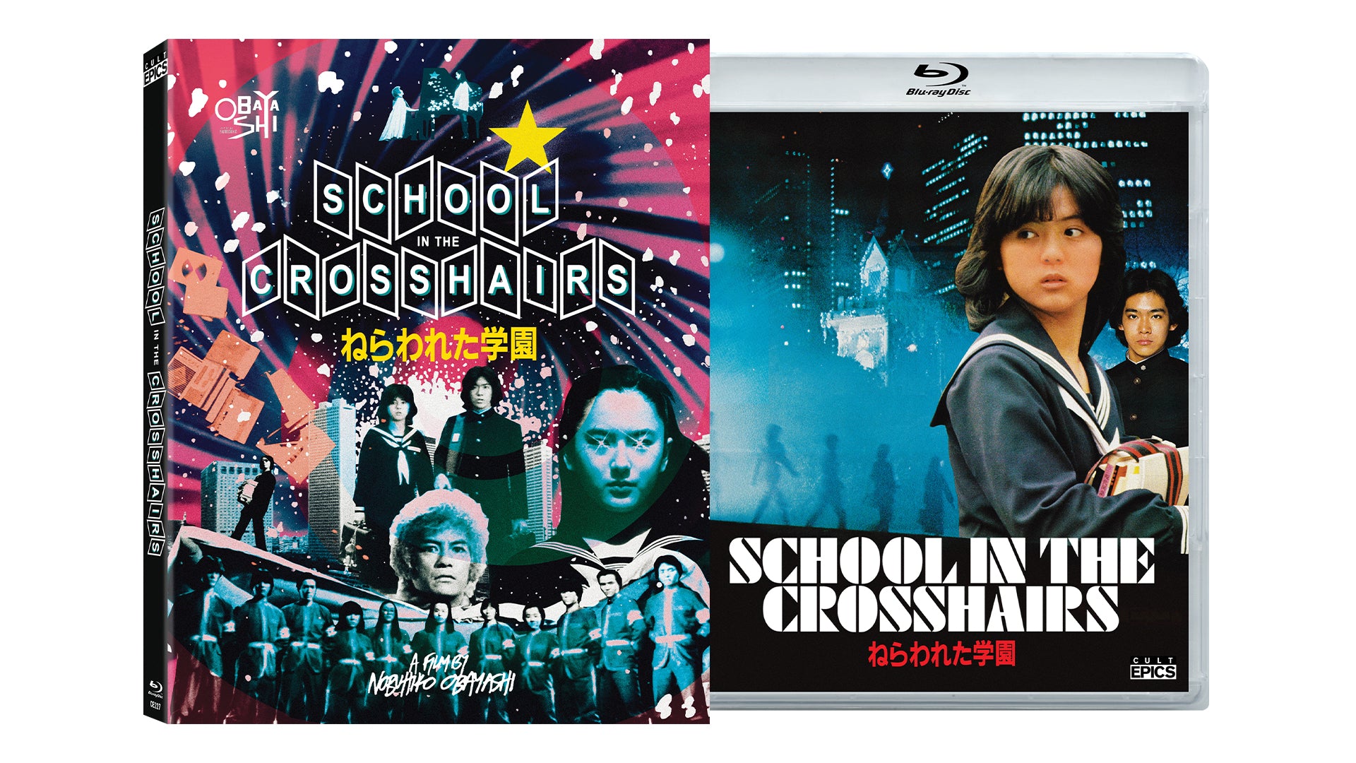 Released months before lead Hiroko Yakushimaru's breakthrough hit Sailor Suit and Machine Gun, Nobuhiko Obayashi's first groundbreaking teenage idol picture is a dazzling mix of special effects and blue-screen artifice--a stylistic flair perfected in Obayashi's debut House, now utilized for the onset of an alien invasion. Ordinary schoolgirl Yuka's (Yakushimaru) new term comes to an odd start when she inexplicably stops an accident by using latent psychic powers. Troubled by her newfound abilities, Yuka also senses a strange force start to take hold of the school, with students turning into mind-controlled fascists, patrolling school halls, stifling dissent and mandating the re-education of freethinkers. A psychotronic fantasy forged into a young girl's destiny to defend the planet, School in the Crosshairs is a cosmic overload of extraterrestrial tyrants, preternatural powers and Obayashi's uniquely adroit filmmaking abilities, underlaid with an existential cry for free will.